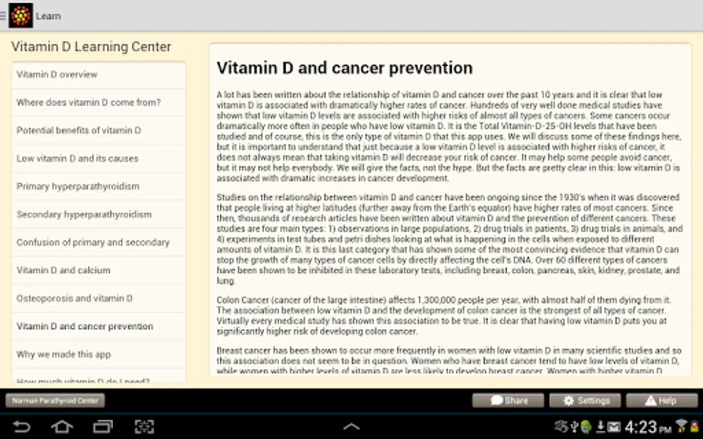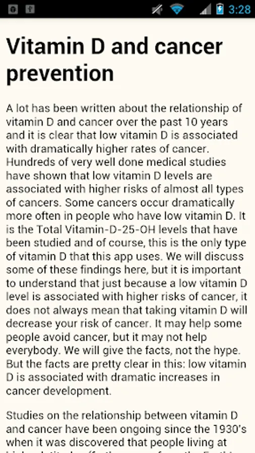 Low vitamin D is the number one diagnosed disease for the past 5 years. Many health issues (possibly even cancer) can be caused by low vitamin D. If you take vitamin D or if you want to be as healthy as you can, then you need this app.