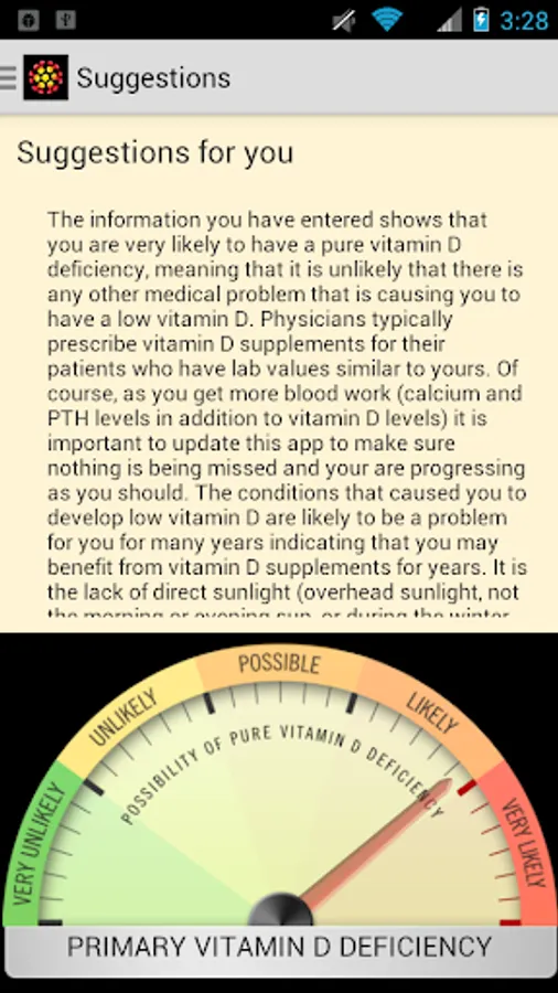 Although most people have low vitamin D because of lack of sun exposure, some people have other medical problems that caused the low vitamin D and thus the treatment is very different. Therefore, everybody with a low vitamin D must know WHY they have low vitamin D before they take vitamin D. Our expert doctors made this app because most doctors diagnose vitamin D problems incorrectly. Often patients are put on vitamin D without their doctor ever testing for other problems that may be present and life threatening. This is a medical app that can make you feel better and potentially save your life. However, it is easy to use and makes learning fun!
