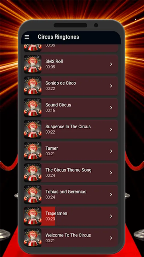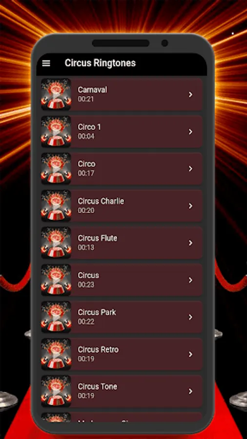 In this app you can find different types of circus ringtones such as: happy ringtones, clowning, drum roll, acrobatics, shows, fantasy, acrobats, animal sounds, funny ringtones, and free old and new sounds of 2023.