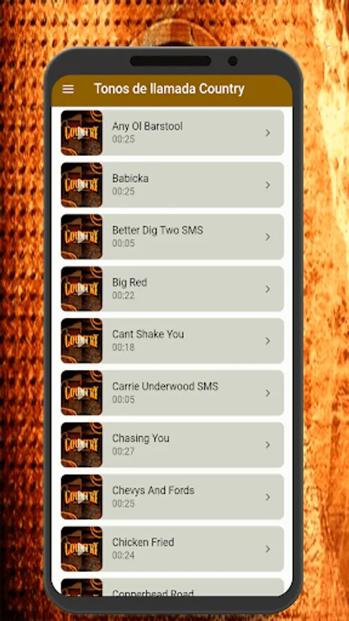 All the sounds have been selected so that you can have the best collection of Country music ringtones and sounds for your phone, you can download the mp3 file, share it on WhatsApp, your social networks and/or set your favorite SMS tone , ringtone, notification sound, alarm on your Android phone.