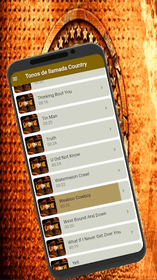 The ringtones that you will find on the playback screen of your cell phone, you can apply each sound whether notification, alarms, call, messages, effects, happy sounds, movie sounds, background tones, instrumental, rap, cowboy, and more, it reproduces the most heard Country tones from classics to the newest sound.