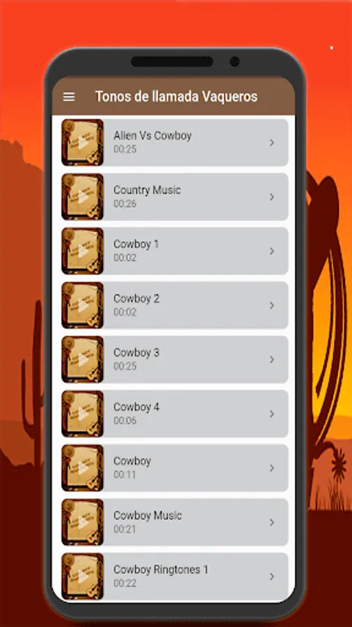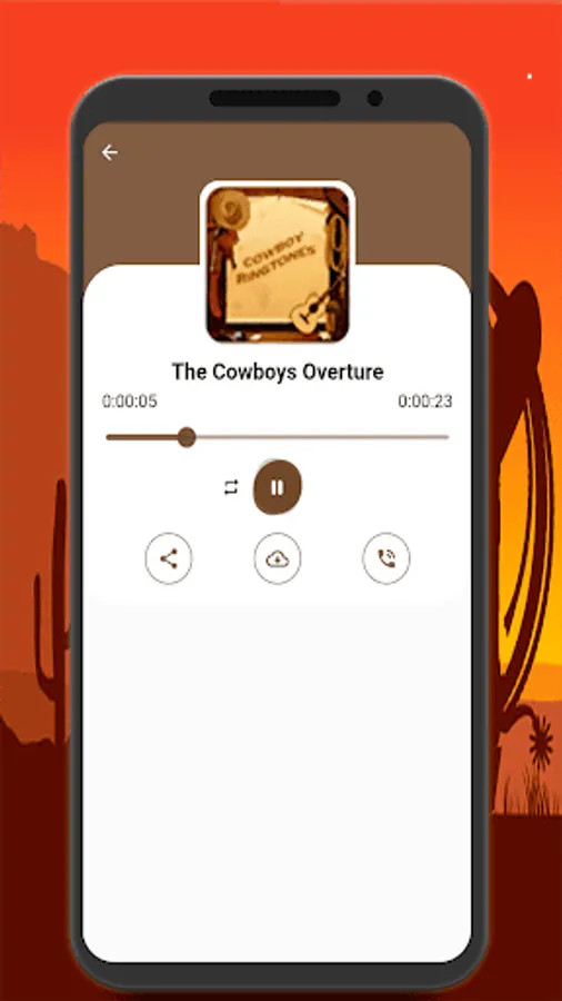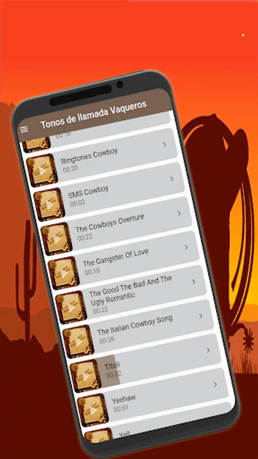 The ringtones that you will find on the playback screen of your cell phone, you can apply each sound whether notification, alarms, calls, messages, effects, happy sounds, movies, background tones, instrumental, rap, western music , country and more, reproduces the most heard western cowboy tones from classics to the newest sounds.