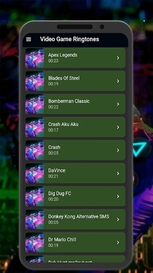 In this application you can find different types of virtual reality video game music ringtones, 3D, classic, 8-bit, funny tones, effects, smiles, animations, gamer, superheroes, retro, gun shots, car engines, moto, funny sounds, xbox, play station, nintendo, game boy, shooting games, soundtracks, modern, old and new 2022 sounds for free.