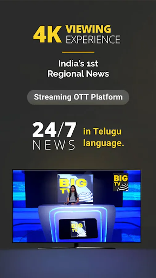 BIG TV is India’s first 24x7 regional news streaming OTT platform in Telugu language. Owned by Pravasa Media LLP, BIG TV will be prominently viewed in Telangana and Andhra Pradesh, it can be accessed from anywhere across the world.