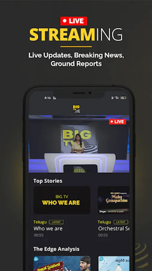 BIG TV presents objective news reports, unbiased analysis and meaningful content using state-of-the-art equipment and technology. It delivers 4K viewing experience, the latest high-definition format in television resolution. Superior internet connectivity has taken news watching to the next level. The advent of 5G enabled services has enabled audience to experience the NextGen technology. BIG TV, the 5G powered new age news channel, is all set to offer a highly immersive experiences to viewers.