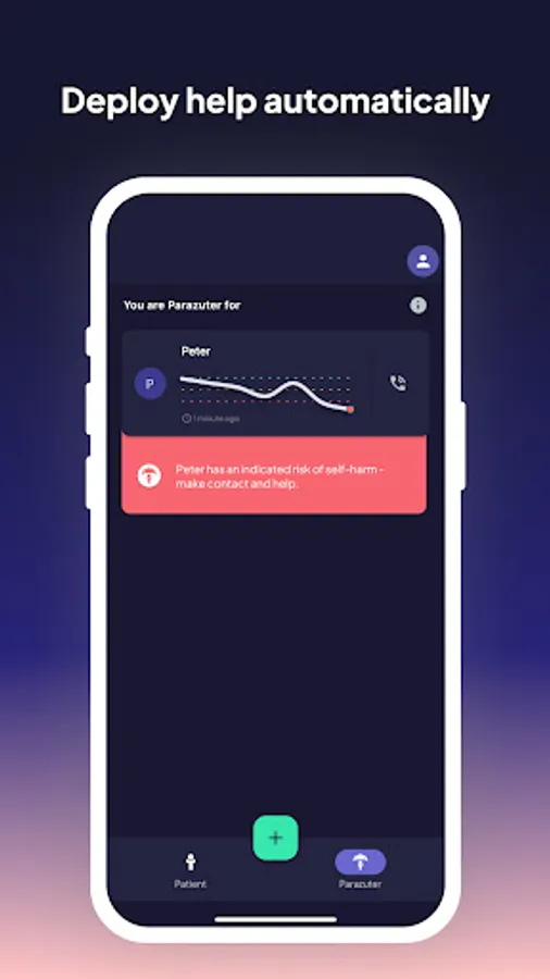 When struggling with mental illness, it’s only natural that you can find it challenging to reach out for help when you are mentally free-falling. To help you, Parazute deploys support from your network when your mental status negatively changes. Early support - even with minor changes in mental status can prevent hospitalization, self-damage, or even more unnecessary fatal tragedies.