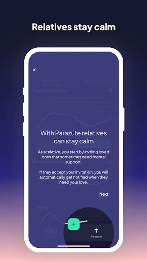 As relatives, there’s a lot of stress and anxiety at stake every day, and you’re desperately trying to help your loved ones. With Parazute, you’ll be notified should a mentally ill friend or a family member need your support.