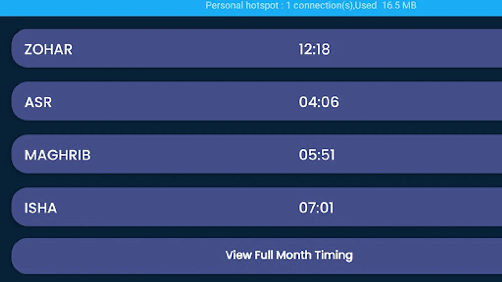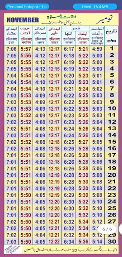 Namaz time table for Parbhani (Maharashtra State), India. App designed using chart available in Masjid contains exact timing as per chart. Please confirm your masjid chart before use.