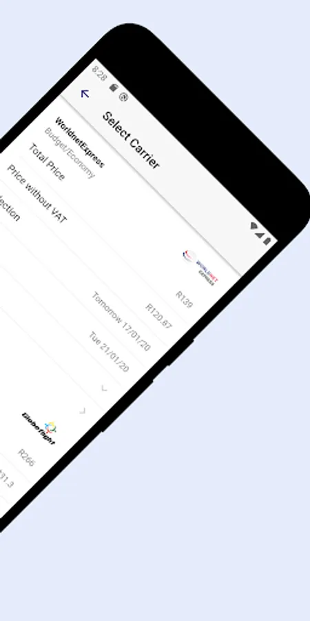 2. Input your parcel’s collection and destination addresses, weight and dimensions. The system then displays a list of Courier Partners, services and pricing that’s available according to your criteria.