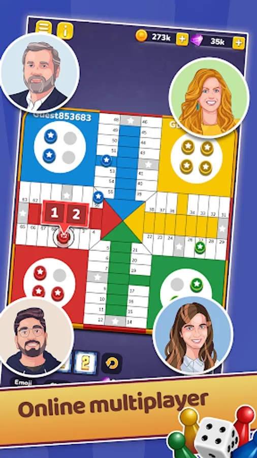 Parchis King is a real time multiplayer gameplay where you can play with real opponents across the world.