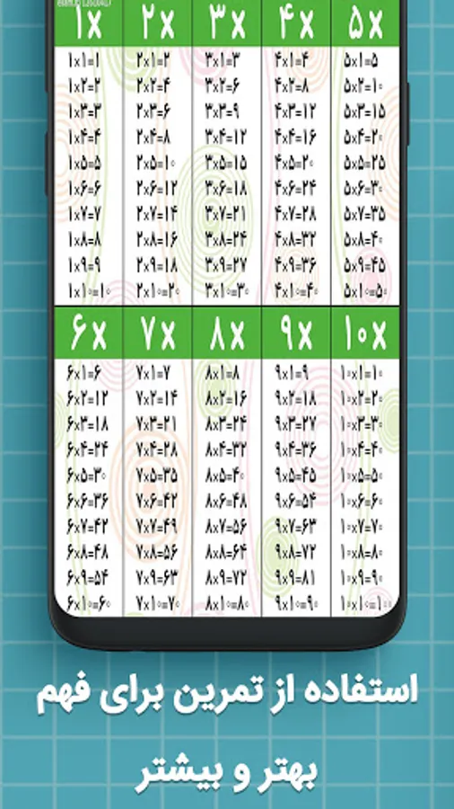 Undoubtedly, children understand the content better through Persian game or multiplication table. One of the most important concepts in learning is multiplication tables. If they understand this concept with a little care and interest, they can easily solve complex mathematical problems in the future. A simple third math multiplication table game acts as a teaching aid tool. So install and enjoy the third multiplication table tutorial in elementary school.