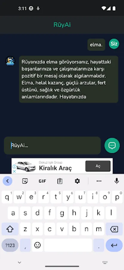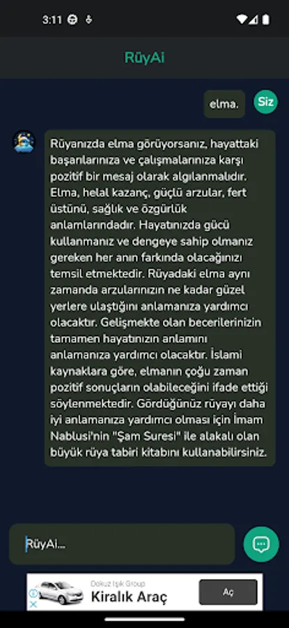 "RüyAi" is an Artificial Intelligence-based Dream Interpretation tool developed within the framework of the requirements of our age.
