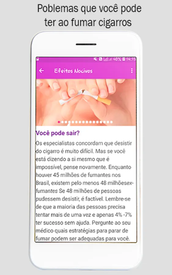 Quitting smoking is not easy for those who have become addicted, is it? but with the help of our app you will always have reasons to put your cigarette down.