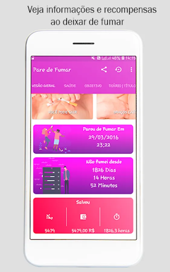 2 - See also how many hours, cigarettes and R $ money you saved by quitting smoking.