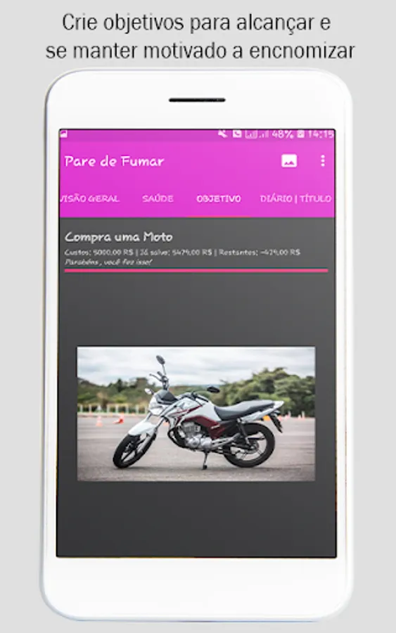4 - Do you like to go clubbing? Cinema or even planning to buy a new vehicle? Create goals in the App and see the results daily.