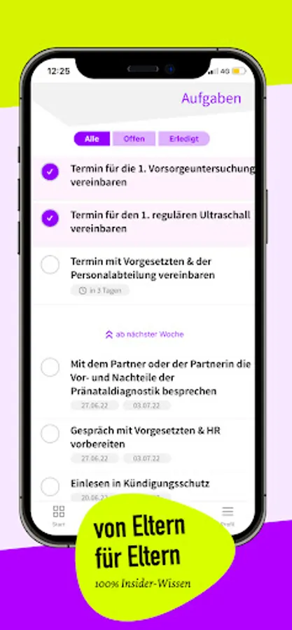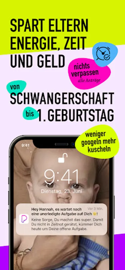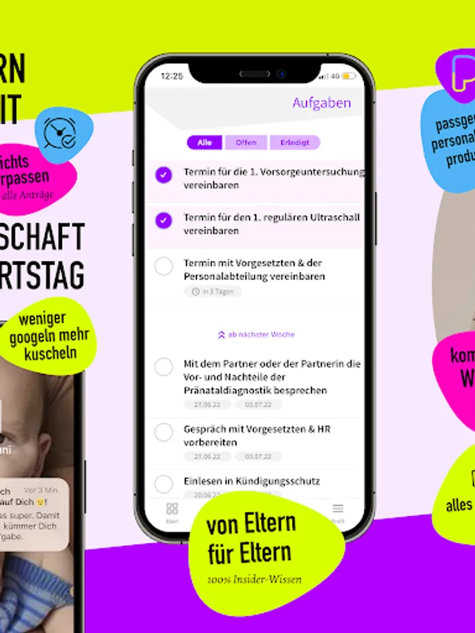 Immer genau abgestimmt auf Dich und Deine individuelle Situation – von Schwangerschaftsphase, über Jobverhältnis und Familienstand bis hin zum Alter Deines Kindes. Wie Post-it und Handywecker in einem. Nur viiieel besser.