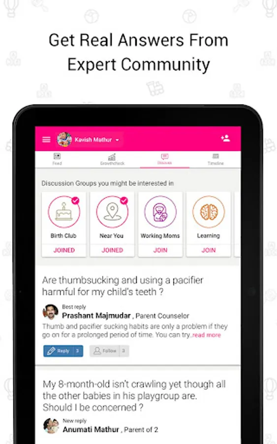 Post queries,get quick answers on parenting & babycare,help others on: