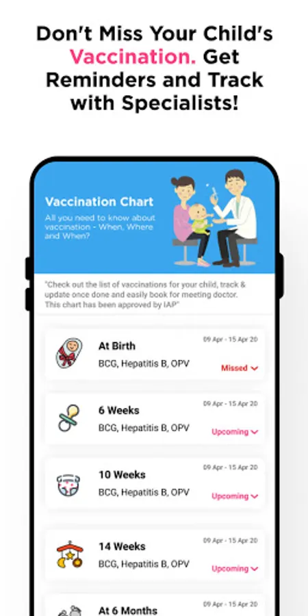 ● Baby Vaccination chart, reminders & due alerts for newborn baby