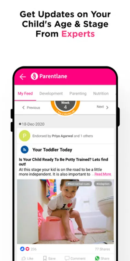 Parentlane is the top rated parenting & baby care app that has helped lakhs of women & families in India. Download the app now to get everything you need as a parent: personalised insights on baby health, baby nutrition, baby vaccination chart, baby daily trackers, baby milestones, baby food recipes, baby development week by week, positive parenting, expert parenting advice from fellow moms, doctors & more.