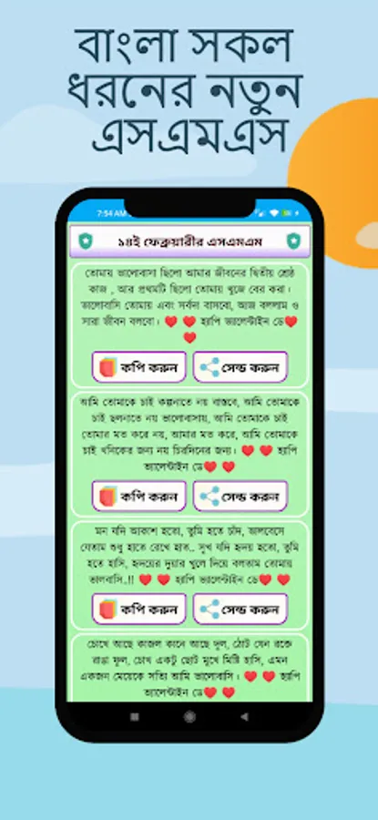 আপনি শুধু উক্ত মেছেজগুলি পড়বেন আর যেটা পছন্দ সেটা কপি,সেয়ার,সেন্ড করে পাঠিয়ে দিবেন আপনার মনের মানুষ কে ।