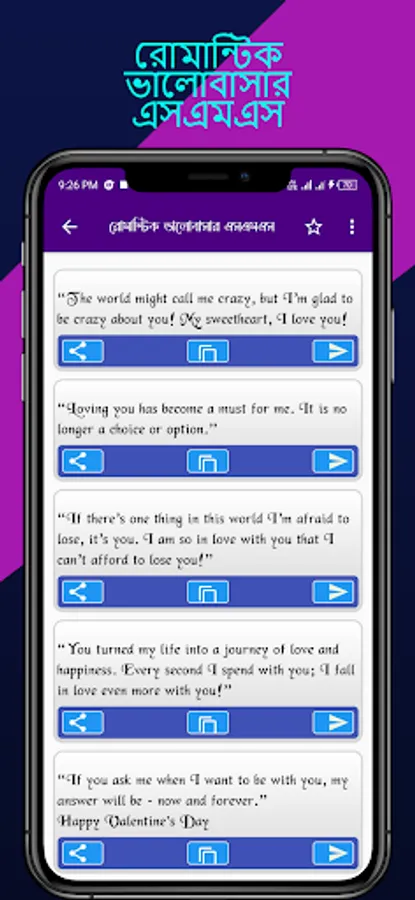 This valentine's day app contains valentine's day 2023 which is enjoyable for all. If you have meaningful your valentine's week festival, you may use this Bangla sms apps which contains valentines sms or valentine sms, sad sms, valobashar sms, koster sms you may send anyone they you choose.
