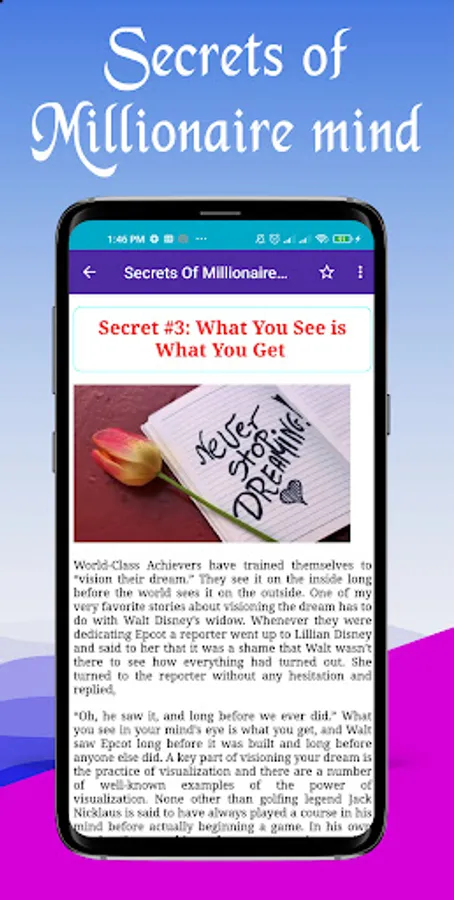 These Secrets of Millionaire Mind for everyone, who has ever had a dream. This Secrets of Millionaire Mind app will teach you how to set goals and achieve that dream, step-by-step, and day-by-day.