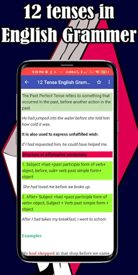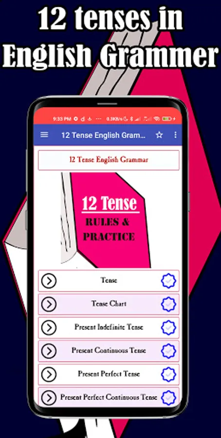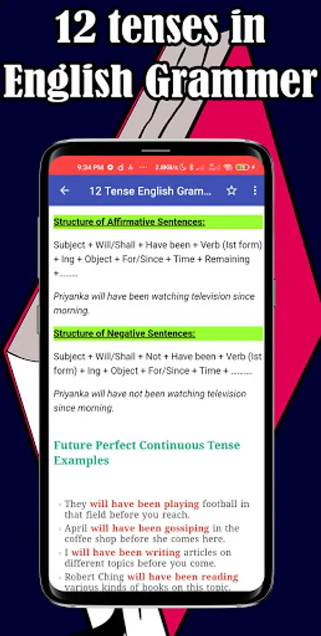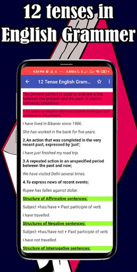 This tense learning app will teach you how to build up your tense skills and learn more English grammar. This 12 tense English grammar app is not general, because this tense practice app includes a tense example, tense MCQ test, tense structure app, tense with example.