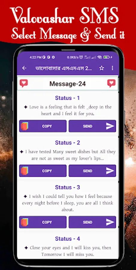 ভালোবাসার sms apps contain all Bangla SMS or balovashar SMS which you send your choosing person.