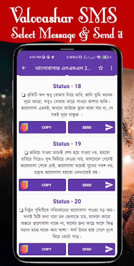 This valentine's day app contains valentine's day 2023 which is enjoyable for all. If you have meaningful your valentine's week festival, you may use this Bangla sms apps which contains valentines sms or valentine sms, sad sms, valobashar sms, koster sms you may send anyone they you choose.