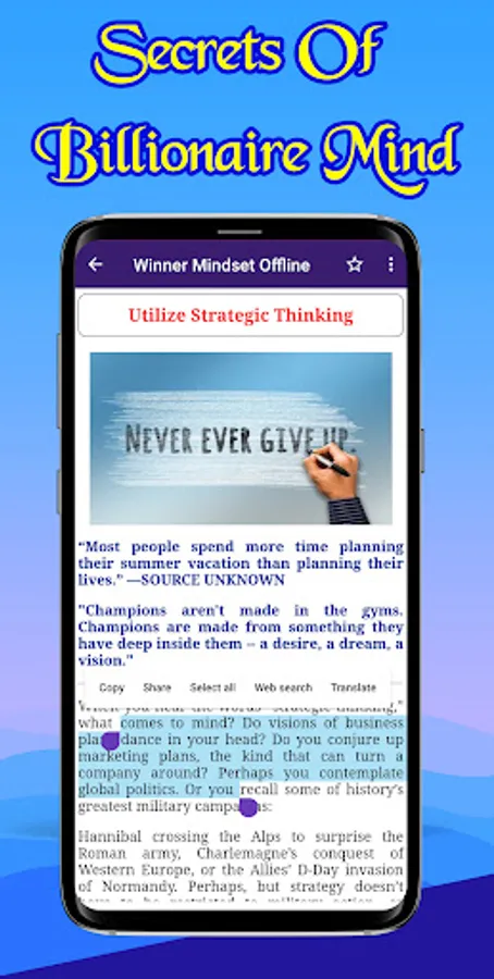 Secrets of Billionaire Mind teaches you how to set up your mindset and earn all secrets of millionaire. These self made millionaire app is about the Secrets of millionaire mind or the secrets of billionaire which become your mind as a successful people mind. So you should learn these successful thinking strategies or millionaires books.