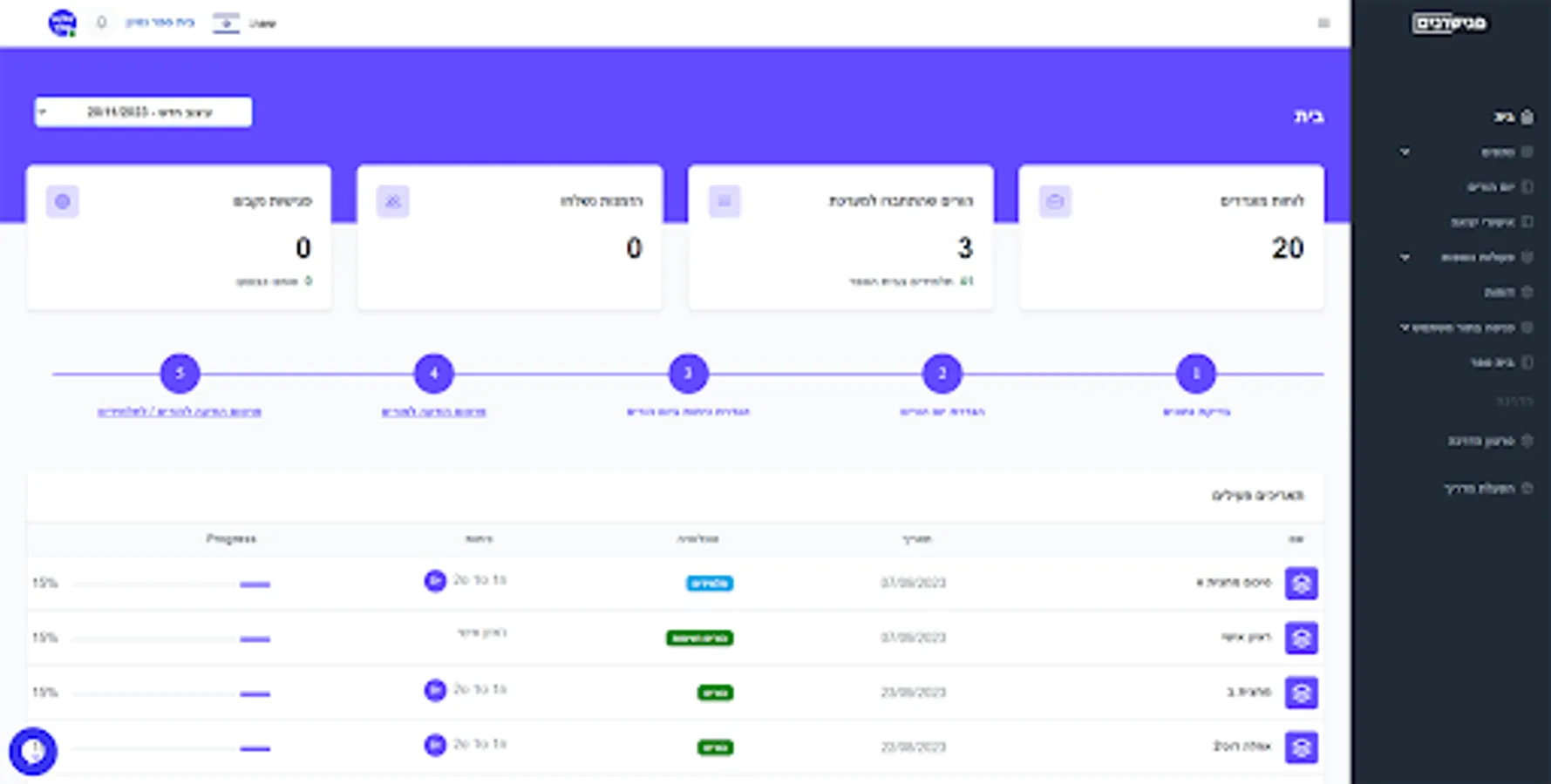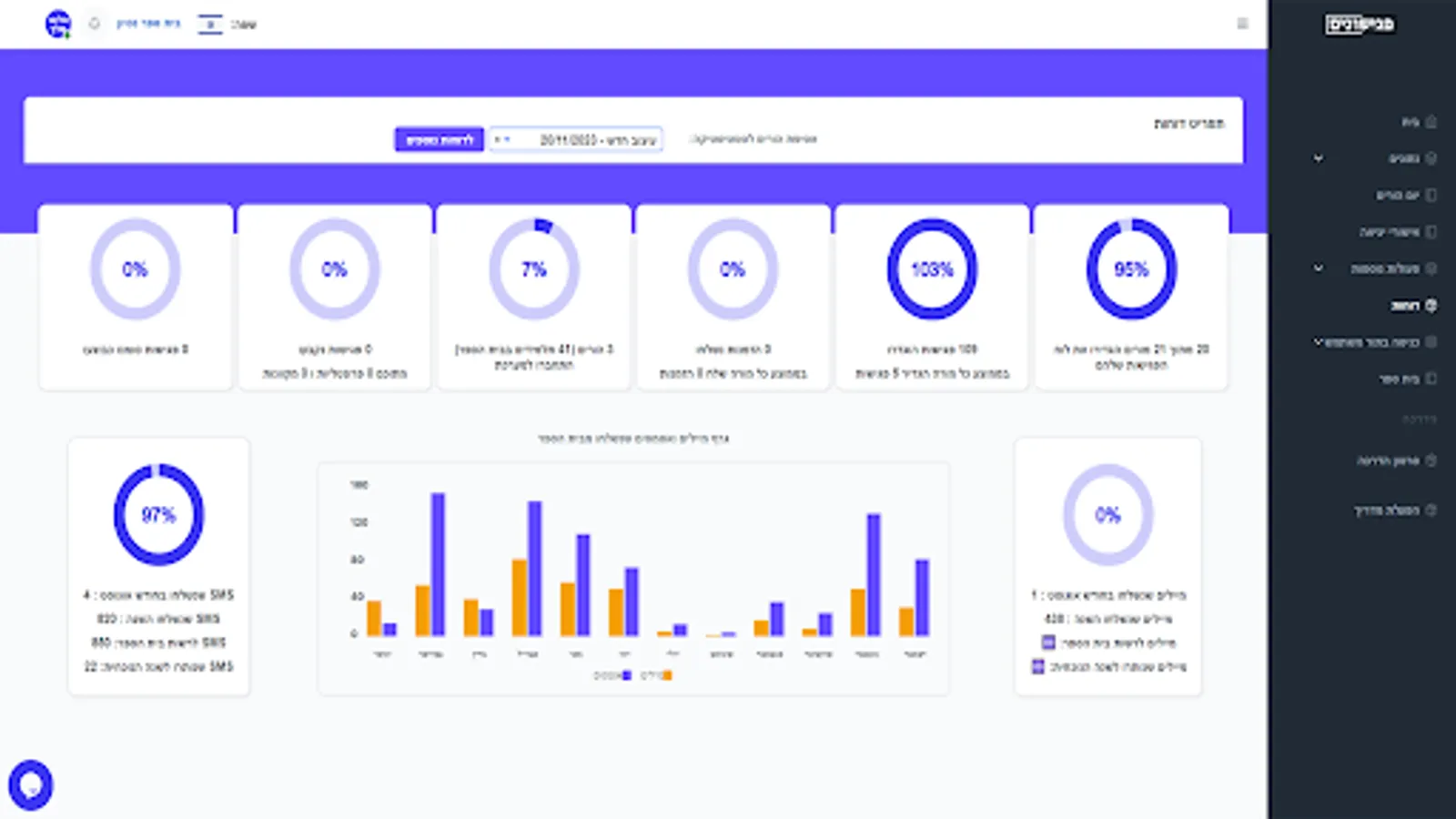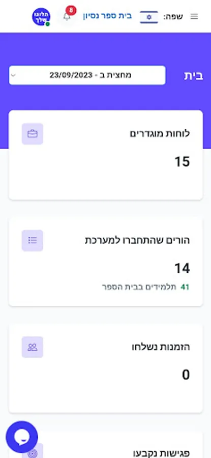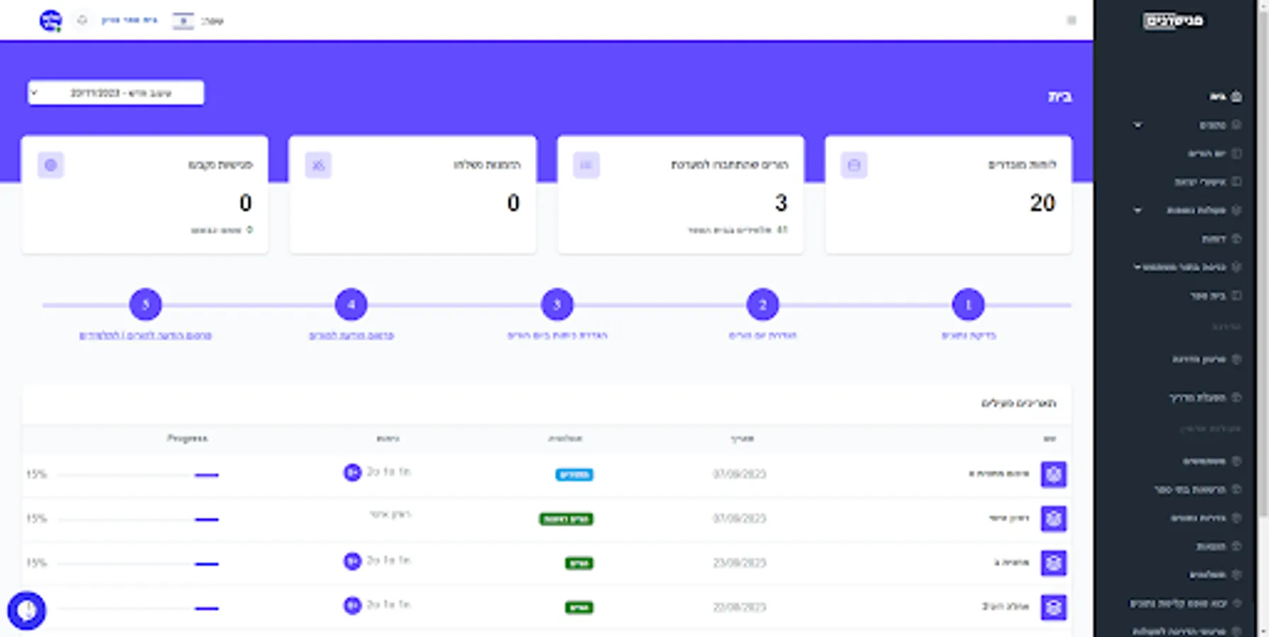 בפאנל הניהול, מנהלי המערכת יכולים לבצע את כל הפעולות הקשורות לבית ספריהם, לצפות בדוחות, לקבל התראות לגבי התקדמות בית ספריהם ועוד.