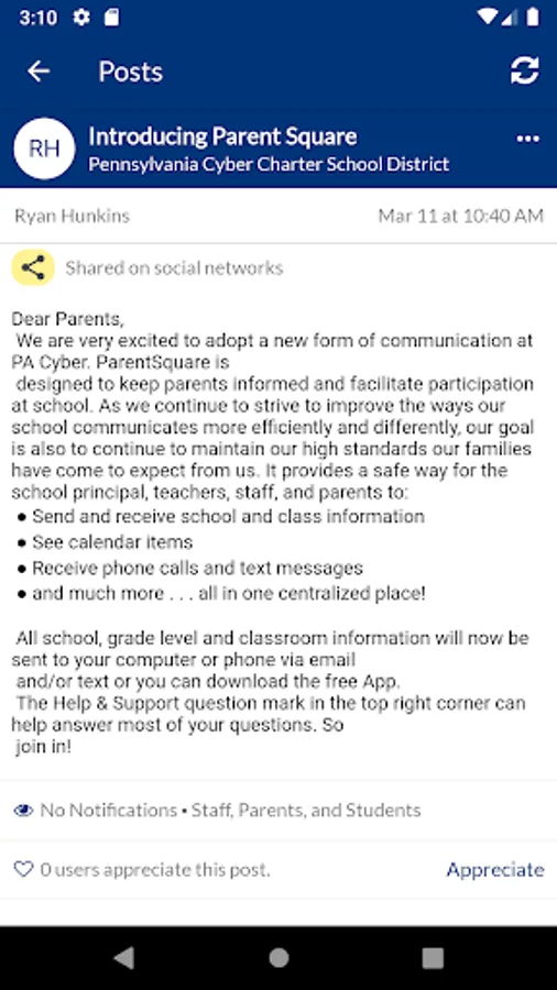 The PA Cyber app is a simple and secure way to stay informed about everything happening at your school. It is a safe and convenient way for students, parents, and teachers to connect. With the PA Cyber app you'll be able to: