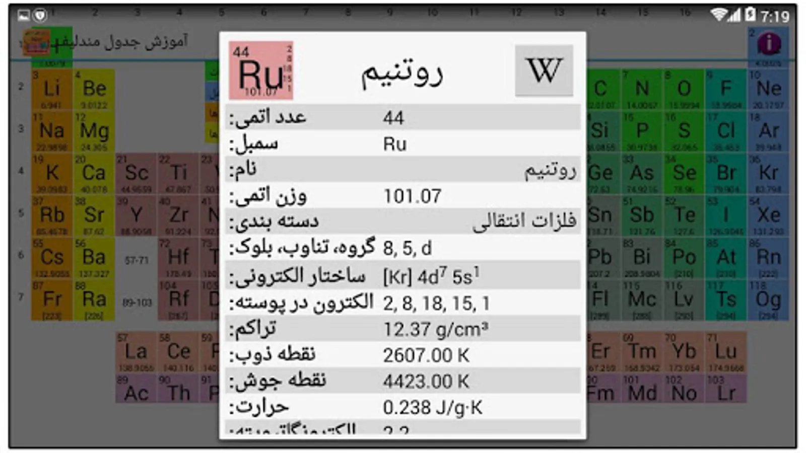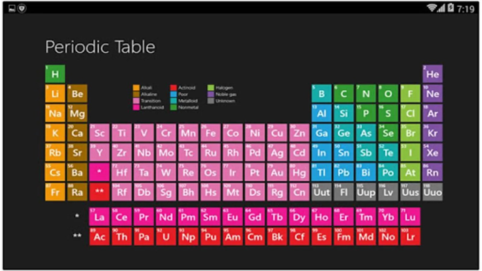 This program will allow you to always have your mobile phone to access the table of information, such as atomic number, mass number and more. The software is fully provided and include all the information related to the periodic table of elements.