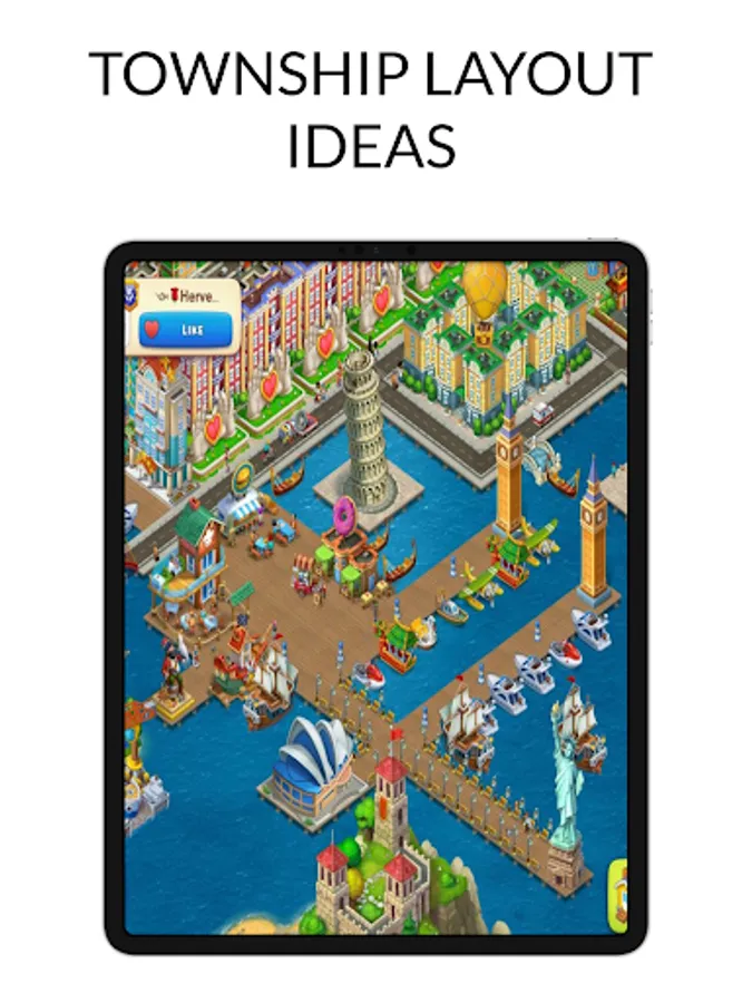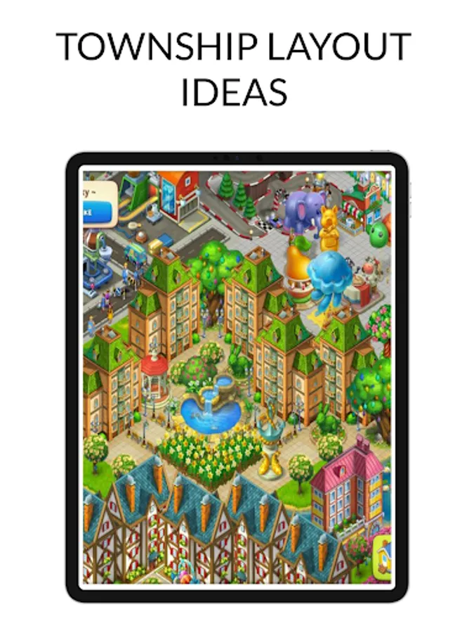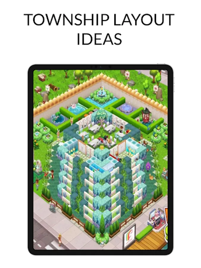 Township Layout Ideas Township is a multi-platform casual farming and city-building game developed and launched in which the player develops his initial town by building factories, harvesting crops, and manufacturing goods. Now for those of you who are looking for city layout ideas, we have collected lots of reference images in this application.