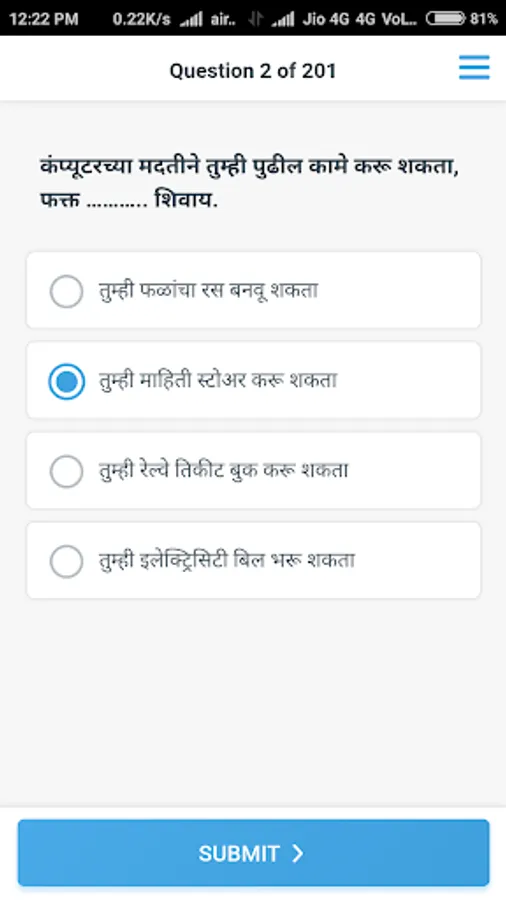 By using MS-CIT EXAM PRACTICE app student can practice MS-CIT questions and MS-CIT mcqs. This is very usefull for mscit objective final exam.