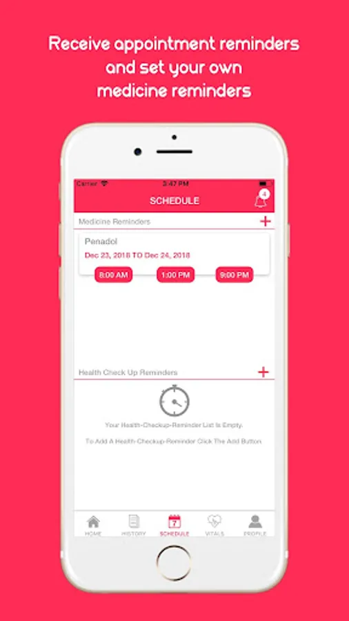 Medicine Reminders: Set medicine reminders through the application so that you have someone to remind you just in case you forget.