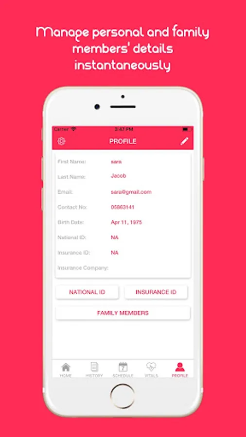 Family Members: Add your family members to the app so that you can assist them with their medical needs too.