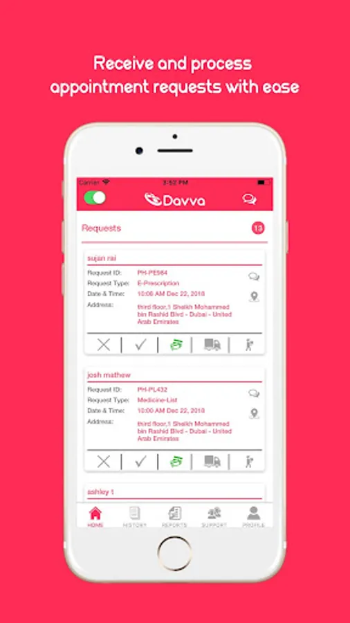 Davva Partner is an app for healthcare partners providing services through the Davva app. The partners can manage and process daily requests through the app along with get an analysis and overview of their activities. Currently Davva services are only available in the United Arab Emirates and we are working hard to increase our presence in the region and beyond.