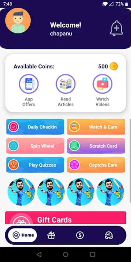 - Play Spin , Solve Quiz scratch cards solve captcha also get daily check-in bonus.
