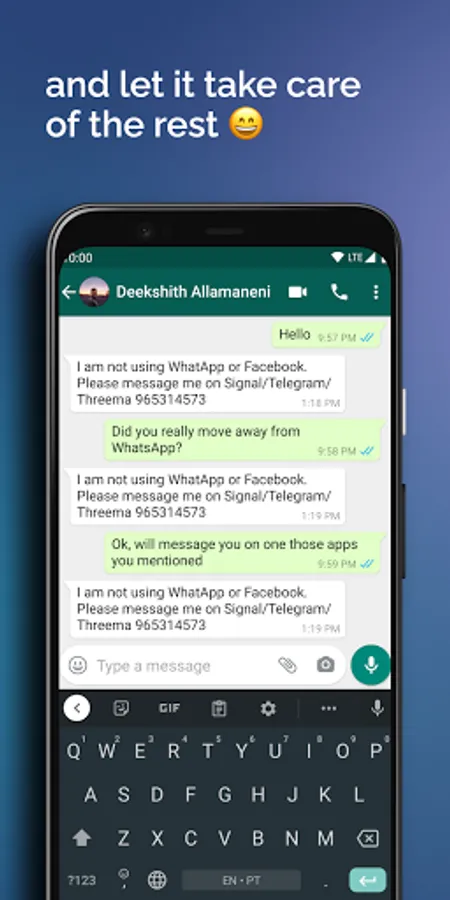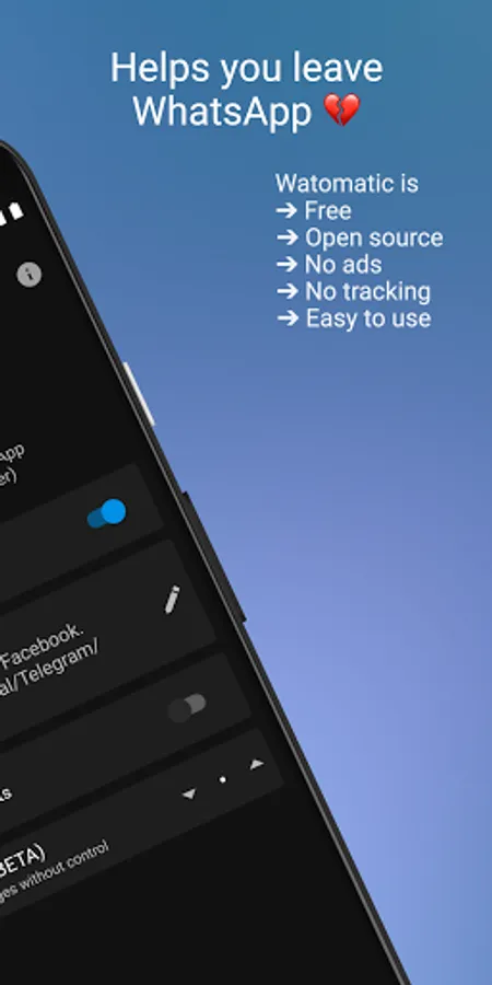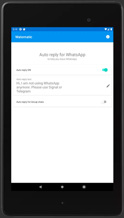 WhatsApp's recent privacy policy changes have triggered a huge migration to more privacy friendly apps like Signal and others. But most of us find it difficult to delete WhatsApp because everyone else uses it. Watomatic tries to make your migration easier by letting your friends automatically know that you are moved to another app. Just set an auto reply message something like “I am not using WhatsApp anymore. Please use Signal…” and let it do the work for you.