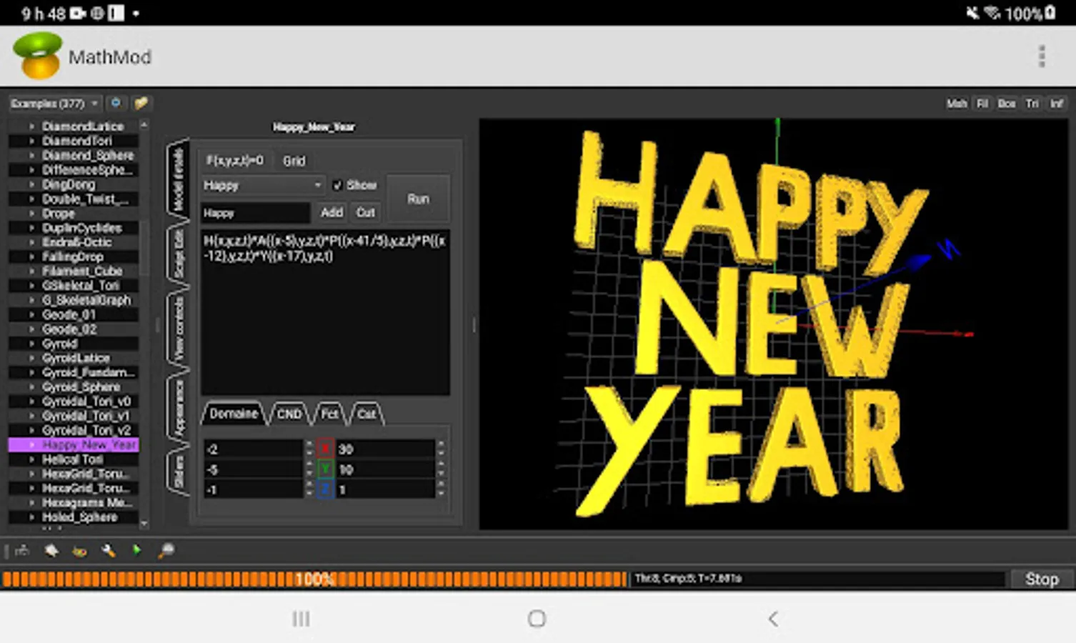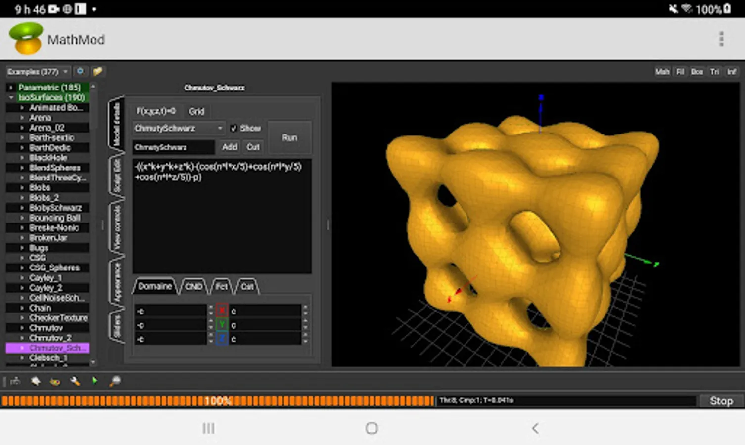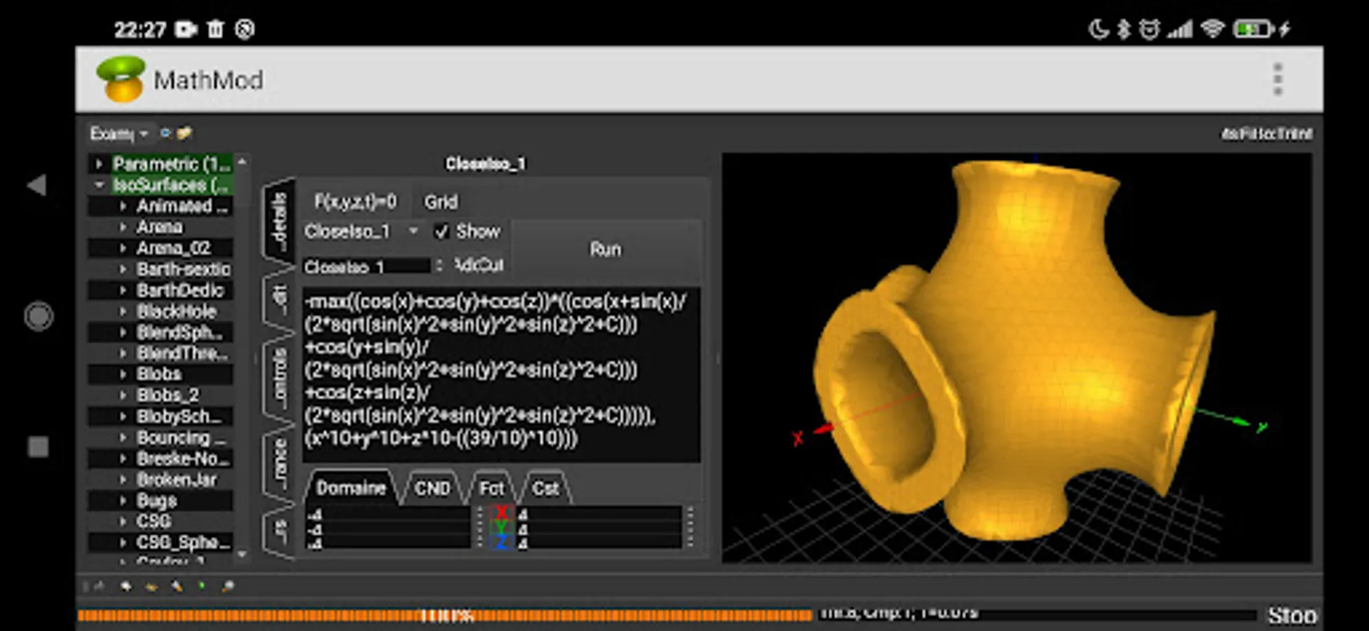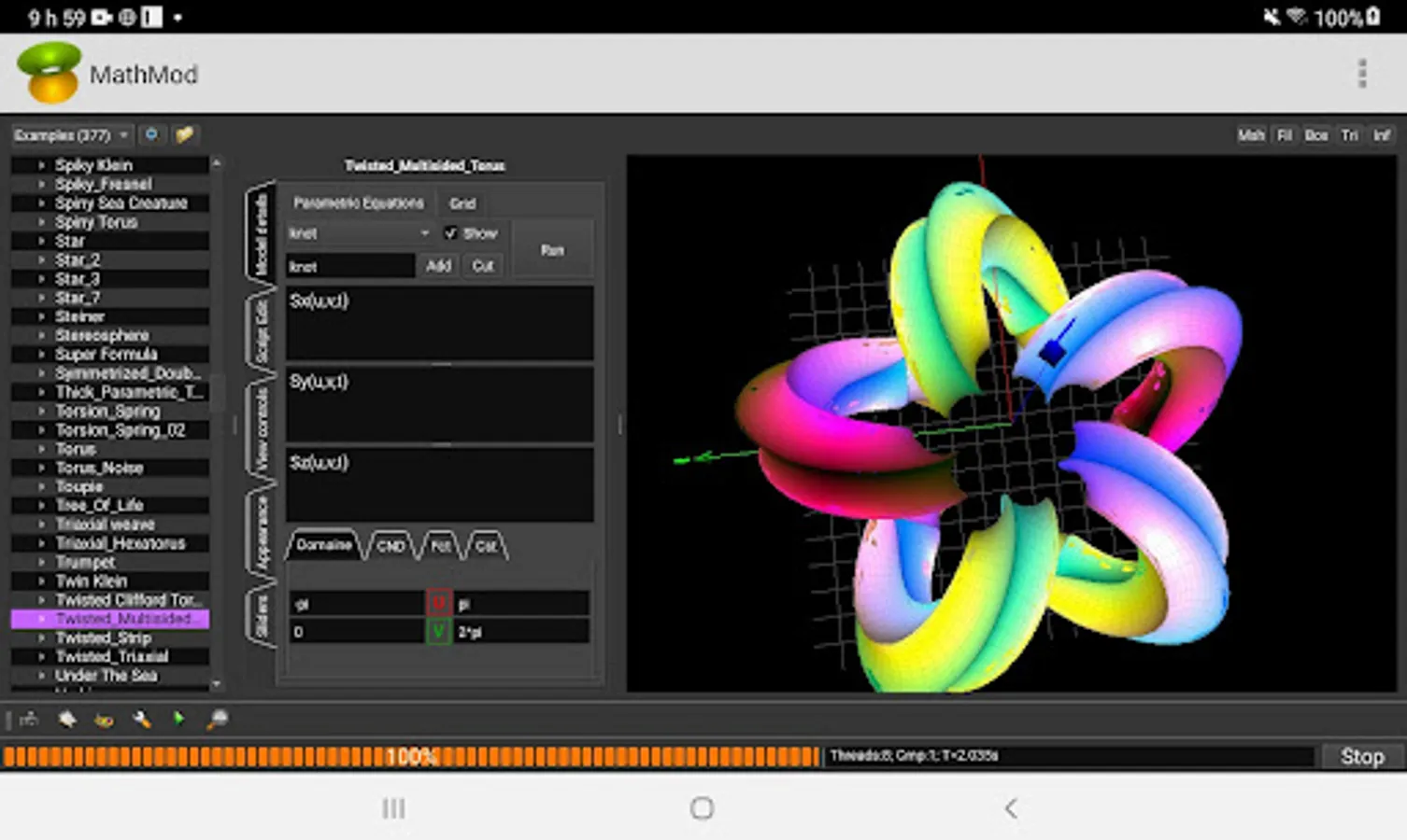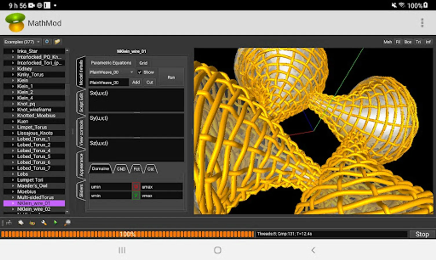 MathMod allows to plot 3D mathematical surfaces, described by implicit or parametric equations, and offers a very large database of model samples that can be generated with it.