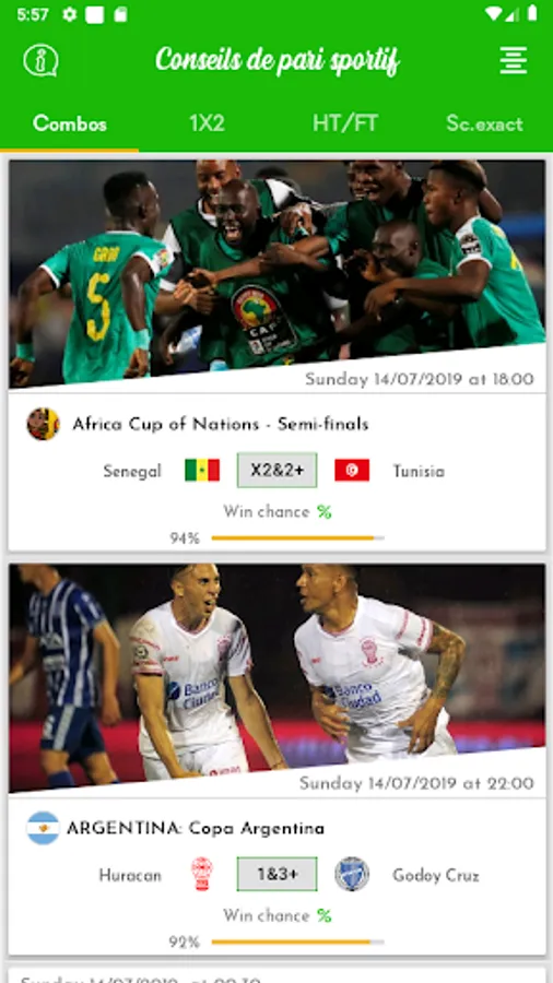 • Matches are selected by analyzing more than 20 leagues around the world.