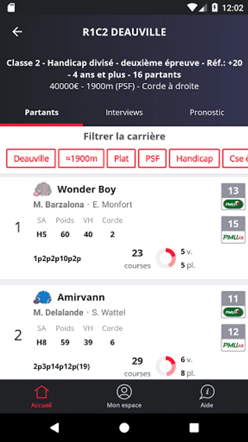 Take advantage of the completeness of the Paris-Turf database. In addition to the usual information (racetrack, race number, meeting number, start time, allowance, rope, autostart start, race category, age of horses, name of race, discipline, specialty, distance, conditions, state of field in real time, number of starters, non-starters) find complete tables of starters including name of horses, number, ironing, blinders, distance performance, jockey or driver, trainer, discharge, overload, supplemented notion, sex, age , absolute record, earnings, music, weight, handicap value, number of races, number of wins / places) and interviews.