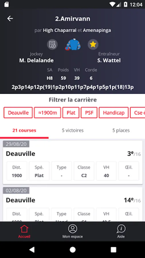 Learn more by opening a horse sheet: all the performances of the career are listed.