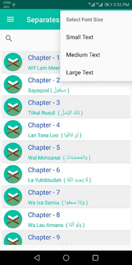 This Quran Sharif app have been divided into Surah & Juzz, to facilitate the people to Memorize Quran Surah wises and learn it with English and Urdu translation. The Same we have included Quran in Juzz, ( 30 Chapters ) where everyone can recite the Quran in Ramadan or in his/her daily routine with English and Urdu translation.