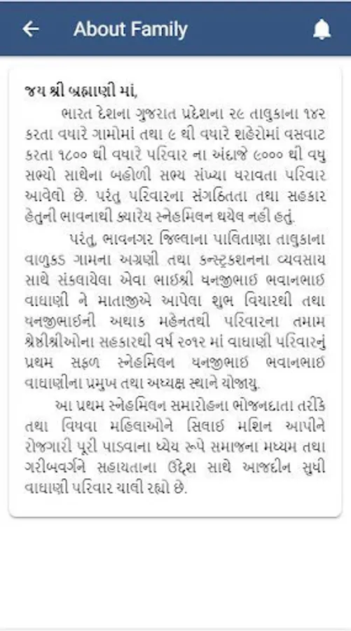 Vaghani Parivar app provides complete details of each and every person from Vaghani families, which makes easy to be in contact with each and every family. And this app going to help you to get contact details of any Vaghani family member at the tap of your fingers.