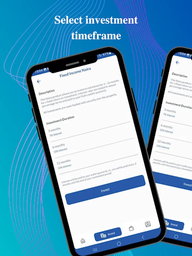 You can invest as little as £10 in our UK real estate product and earn fixed returns in pounds. You decide how long to invest. Choose between three, six, twelve, and twenty-four months tenors, make payment from your wallet, and watch your money grow. We will do the rest for you.