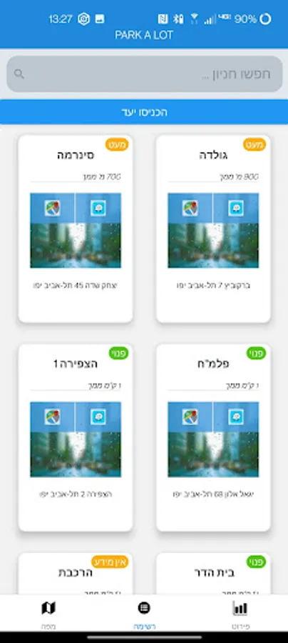 Parkalot gives you information on parking lots around you - find parking lots and see if they are available. We currently only support Ahuzot Hahof!