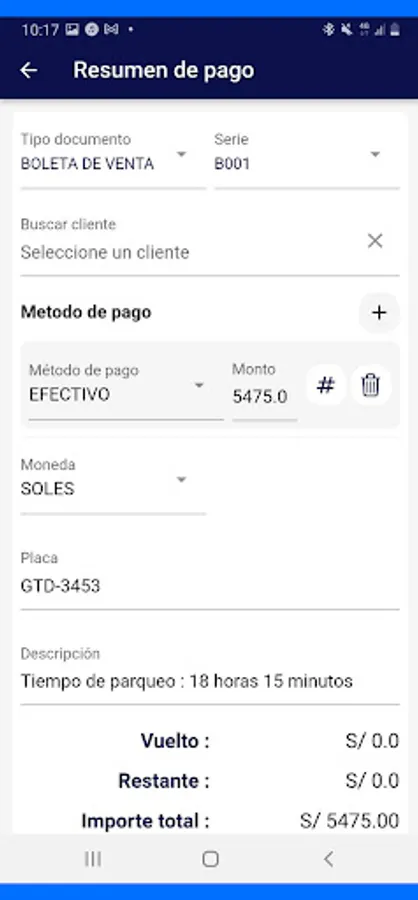 Choose the parking rate according to the type of vehicle (Car, motorcycle, truck, etc.)