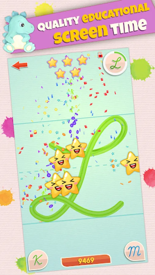 Our ABC and 123 tracing evaluation algorithms allow for an accurate and fun reward, using a 5 star rating for each exercise. This engages and motivates the kids to progress and to strive for more.
